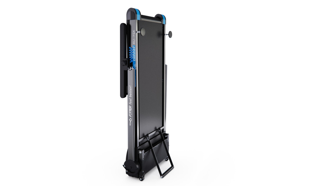 Электрическая беговая дорожка DFC Fytter 7SX легко складывается и раскладывается, а хранение возможно как под кроватью – горизонтально, так и у стены или в шкафу - вертикально. Максимальный вес пользователя составляет 120 килограмм. Отличительной особенностью данной беговой дорожки является установленный механизм защиты питающей сети: индуктор вместе с сетевым фильтром. Данные элементы помогают подавлять импульсные помехи высокой и низкой частоты, а также защищают вашу беговую дорожку от кратковременных перепадов напряжения в домашней сети. Также данные элементы защищают другие ваши электронные приборы, подключенные к питающей сети от импульсных помех, которые могут возникнуть при эксплуатации беговой дорожки. При слишком высоком или слишком низком напряжении в вашей сети, рекомендуется установить стабилизатор. Соединение по Bluetooth с популярным приложением для тренировок “iConsole + Training” позволит сделать каждую тренировку более увлекательной и персонализированной. Доступ к приложению бесплатный, вам нужно лишь скачать его на свой гаджет. Двигатель мощностью 3 л/с позволяет заниматься на тренажере пользователям с разной физической подготовкой. Скорость беговой дорожки от 1 до 16 км/ч. Беговое полотно регулируется по углу наклона от 0 до 15° с консоли. Воспользуйтесь быстрыми кнопками на панели, либо постепенно меняйте угол с помощью кнопок "+" и "-". Тренажер оснащен 40 встроенными программами, целевым режимом, 5 пользовательскими программами и ручным режимом. 5-дюймовый дисплей показывает всю необходимую информацию о тренировке: время, расстояние, калории, пульс, наклон и программы. Система амортизации с гелевыми подушками снижает нагрузку на суставы и предотвращает травмы. Дорожка Fytter 7SX имеет размеры полотна 120x45 см и толщину 1.6 мм, что обеспечивает комфорт и долговечность.