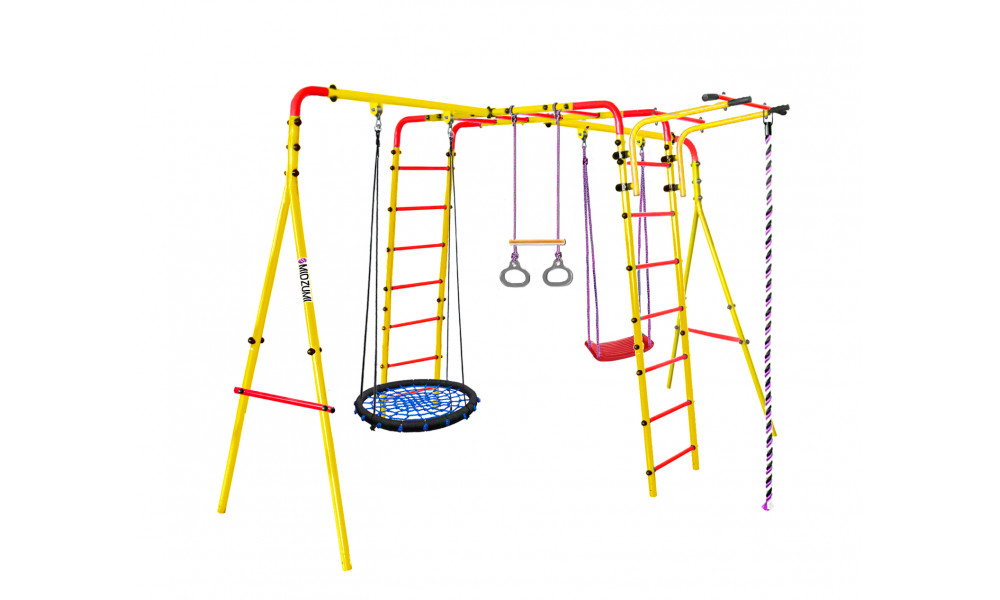 Торговый Дом Midzumi представляет новинку Уличный Детский спортивный комплекс Midzumi Chikara Large L в новом цветовом решении - солнечный день. Этот спортивный комплекс показывает разнообразие модельного ряда продукции Midzumi. Прочная металлическая конструкция позволяет выдерживать до 100 кг. Крепление Комплекса осуществляется с помощью бетонирования. Midzumi Chikara Large L состоит из каркаса двух металлических лестниц с рукоходом, передвижного турника, двух разных навесных пластиковых качелей, каната и колец с перекладиной.